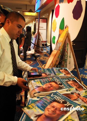 世界最大的消費電子產品展一月七日在美國拉斯維加斯開幕前,以雅虎總裁楊致遠做封面的《視覺》雜志在新聞中心十分醒目。中新社發 賈國榮 攝