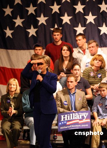 1月7日,美國民主黨總統競選人希拉里在新罕布什爾州的沙倫市進行該州初選前最后的競選活動。希拉里此前在艾奧瓦州初選落敗,目前在新州民調亦處于落后,競選形勢不容樂觀。中新社發 李靜 攝