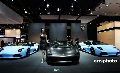 當地時間1月14日,蘭博基尼在底特律北美車展上彰顯個性,高雅醒目的色彩和奢華的內廂配置,吸引了眾多媒體關注。中新社發 潘索菲 攝