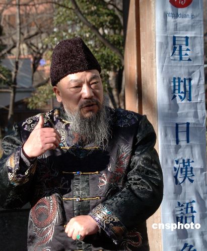 1月27日,東京星期日漢語角舉行第24次交流會,邀請正在日本訪問的中國著名國畫大師安云霽教授進行演講和座談。安云霽不僅介紹了中國的文化藝術,還就中日文化交流、北京奧運會等話題進行了深入淺出的演講。安云霽的滿口京腔以及充滿中華民族色彩的服裝,吸引了參加漢語角的日本朋友,多次贏得熱烈的鐘掌聲。中新社發 段躍中 攝