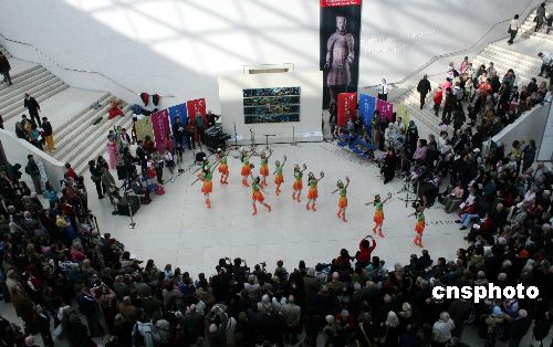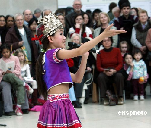 中國全國婦聯(lián)、倫敦市長辦公室和“時代中國”組委會共同舉辦的“中英婦女文化周”在倫敦開幕。當?shù)貢r間11日下午,中國兒童中心藝術(shù)團的演員在大英博物館大廳里的表演吸引了不少當?shù)赜^眾。中新社發(fā) 李鵬 攝