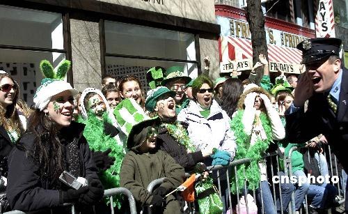 3月17日,美國紐約曼哈頓舉行了一年一度的圣帕特里克節大游行。中新社發 鄧悅 攝