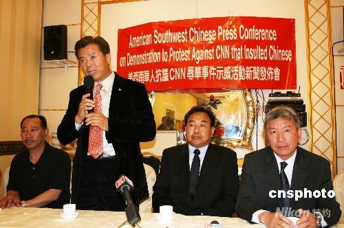 當地時間4月17日,美國洛杉磯舉行了“西南華人抗議CNN辱華事件示威活動新聞發布會”。據悉,美南加州多個華人華僑社團組織呼吁美西南華人華僑走上街頭,前往CNN洛杉磯分部,抗議CNN對中國的負面報道和主持人卡弗蒂的辱華言論,并要求其作出公開、正式的道歉。中新社發 金立 攝