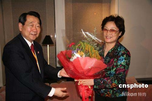 中國國務院僑辦主任李海峰二十二日晚率團抵達泰國,將在泰國進行為期兩天的訪問僑界活動。圖為泰國正大集團謝國民董事長(左)前往機場迎接李海峰主任。中新社發 顧時宏 攝