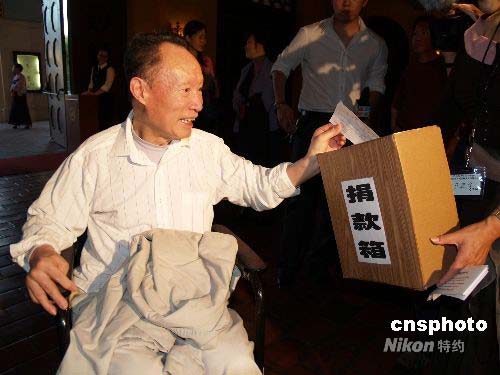 圖:美國一癱瘓華裔老人為四川災區捐款