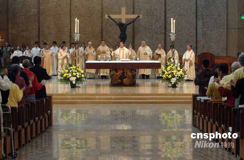 洛杉磯“天使之后”大教堂五月二十四日(周六)舉行大彌撒,為中國四川大地震遇難者祈禱。當地約五百名天主教信眾參加了彌撒!疤焓怪蟆贝蠼烫檬翘熘鹘搪迳即壙偨虆^的主教堂,洛杉磯總教區是美國最大的天主教區。中新社發 張煒 攝