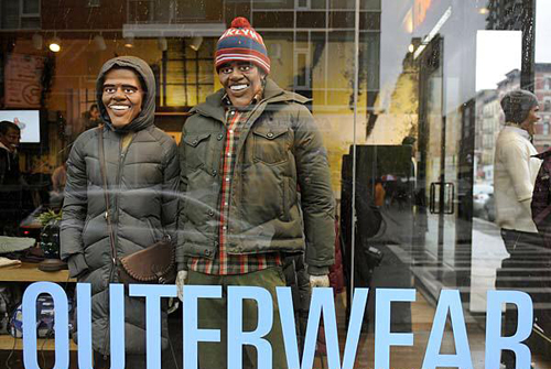 10月28日,在美國紐約的一家服裝店里,做成美國民主黨總統候選人奧巴馬模樣的模特身著冬裝,笑迎顧客。美國總統選戰如火如荼,商家們想出此絕活招攬顧客,成為一景。