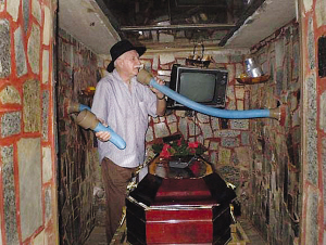 據(jù)和弗洛伊德結(jié)婚52年的妻子對(duì)記者稱(chēng),自從她開(kāi)始認(rèn)識(shí)弗洛伊德以來(lái),他就一直擔(dān)心自己被活埋了。為了擺脫被“活埋”的恐懼,弗洛伊德竟然親自為自己建造了一個(gè)“逃生墓穴”,這個(gè)用石頭造成的“逃生墓穴”和普通去世者安葬的墓穴顯然大不一樣,因?yàn)樗锩娌粌H有電視機(jī)、水罐、水果箱,甚至還有四個(gè)通風(fēng)口,新鮮的空氣可以通過(guò)墓穴頂部的通風(fēng)管道流進(jìn)墓穴中。更讓人感到不可思議的是,在棺材旁邊還裝有兩個(gè)自制的“求救擴(kuò)音器”,這兩個(gè)擴(kuò)音器通過(guò)管道通向墓穴外面的塑料喇叭。