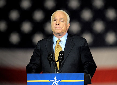 美東時間四日晚十一點二十分,共和黨總統候選人麥凱恩在亞利桑那州鳳凰城面對選民發表講話,承認其敗選,并向奧巴馬當選美國下屆總統表示祝賀。