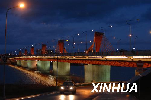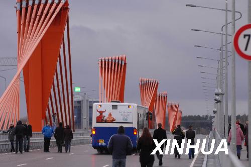 11月17日,拉脫維亞恢復獨立以來建設的最大規模建筑——南橋正式投入使用。在拉脫維亞首都里加建設的南橋長803米,寬34.28米,2004年11月開始動工興建。新華社記者楊德洪攝