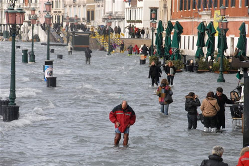 12月1日,由于海水上升,威尼斯城幾乎所有街道都被海水淹沒,圣馬可廣場上的水深達(dá)80厘米。威尼斯當(dāng)局發(fā)出警報(bào),稱海水可能要比正常水位上升1.6米,水城威尼斯真的變成了“水城”。