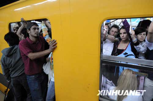 由于阿根廷首都布宜諾斯艾利斯地鐵部分員工當(dāng)天舉行罷工,導(dǎo)致地鐵運營車次驟減,列車誤點現(xiàn)象嚴(yán)重,車廂內(nèi)人滿為患。地鐵系統(tǒng)無法正常運轉(zhuǎn)還導(dǎo)致地面交通流量大增,整個城市交通陷入一片混亂。馬丁·薩巴拉 攝