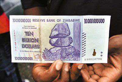 津巴布韋政局動蕩,經濟惡化和嚴重通脹,央行前日起正式發(fā)行面額為10億、50億和100億的新鈔,創(chuàng)下世界之最。該國一周前才發(fā)行了面額1千萬、5千萬和1億的3種新鈔。