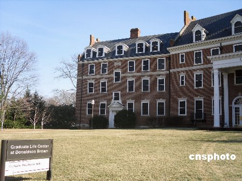 圖為弗吉尼亞理工大學21日晚發(fā)生中國留學生血案的研究生生活中心大樓。弗吉尼亞警方表示,美國東部時間21日晚7時(北京時間22日早8時),在弗吉尼亞理工大學中的一家餐館中,嫌犯朱海洋(Haiyang Zhu ,音譯)殘忍地用大菜刀將該校女同學楊欣(Xin Yang,音譯)的頭顱砍下。女研究生楊欣來自中國北京,現(xiàn)年22歲,1月8日剛剛抵達美國,在弗吉尼亞理工大學學習會計學。兇殺嫌疑人朱海洋,現(xiàn)年25歲,來自中國寧波,于2008年秋季入學,攻讀農業(yè)和應用經濟學博士學位。根據(jù)校方提供的緊急聯(lián)絡人檔案,被害人和嫌疑人相互認識。中新社發(fā) yudonghui 攝