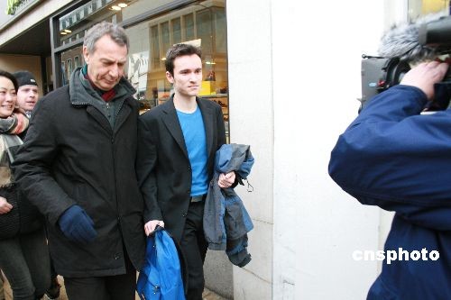 當?shù)貢r間2月10日上午10時,干擾溫家寶總理劍橋演講的德國籍學生馬丁·楊克,在劍橋地方法院出庭受審。馬丁為自己做無罪辯護,法庭將于3月10日10時重新開庭審理。圖為馬丁·楊克在初審后離開法院。中新社發(fā) 李鵬 攝