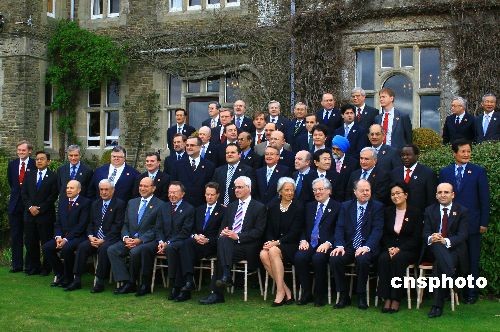 當地時間3月14日,二十國集團財長和央行行長會在英國南部的霍舍姆區召開。圖為財經高官們在會議間歇拍“全家福”。中新社發 李鵬 攝