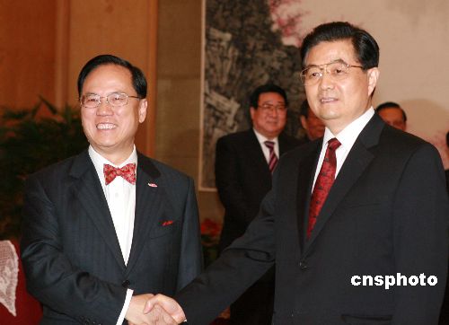 十一月二十三日,國家主席胡錦濤在北京會見來京述職的香港特別行政區行政長官曾蔭權。中新社發 廖文靜 攝