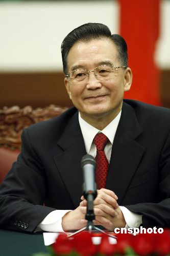 溫家寶與日本首相福田康夫在北京共見(jiàn)記者