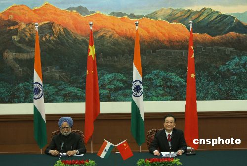 圖:溫家寶與印度總理辛格共同會見記者