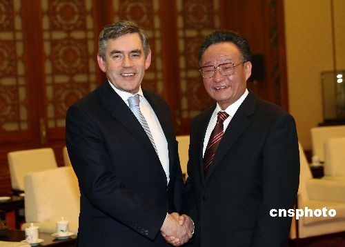 圖:吳邦國(guó)會(huì)見英國(guó)首相布朗