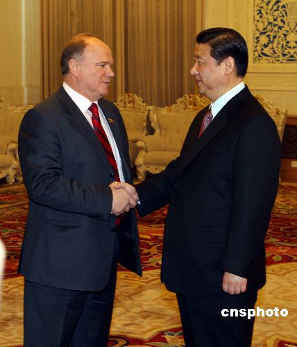 一月二十四日,中共中央政治局常委、書記處書記習近平在北京會見俄羅斯聯邦共產黨主席根·安·久加諾夫一行。中新社發 任海霞 攝