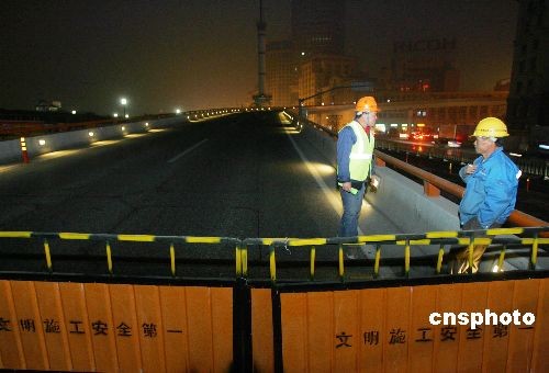 2月23日零時,隨著最后一輛車的通過,素有“亞洲第一彎”之稱的上海延安路高架外灘匝道正式封閉,拆除工作也隨之開始,此舉標志著外灘地區交通綜合改造工程全面展開。中新社發 湯彥俊 攝