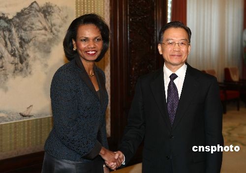 圖:溫家寶會(huì)見美國國務(wù)卿賴斯