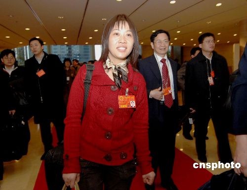 圖:中國農民工代表胡小燕抵京參加“兩會”