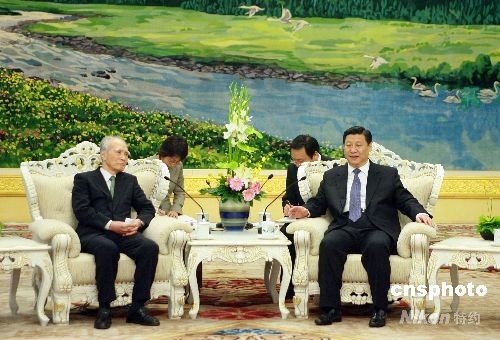4月18日,中國國家副主席習近平在北京人民大會堂會見日本前首相村山富市。中新社發 廖文靜 攝