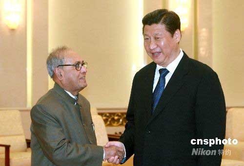 6月6日,中國(guó)國(guó)家副主席習(xí)近平在北京人民大會(huì)堂會(huì)見(jiàn)印度外交部部長(zhǎng)慕克吉。中新社發(fā) 廖文靜 攝