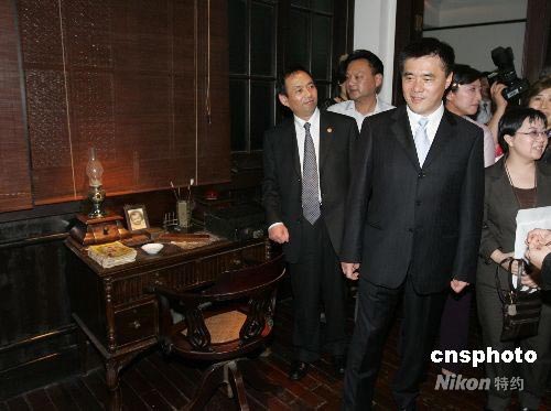 6月23日晚,臺北市長郝龍斌到訪上海時尚地標新天地,專門考察、參觀老上海的特色建筑——石庫門,了解上海的過去和現在。中新社發 潘索菲 攝