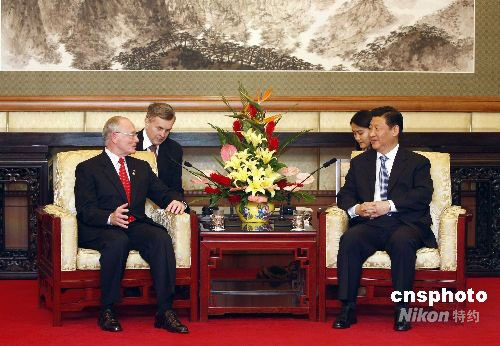 9月8日,中國國家副主席習近平在北京釣魚臺國賓館會見美國退伍軍人事務部部長皮克。中新社發 盛佳鵬 攝