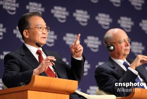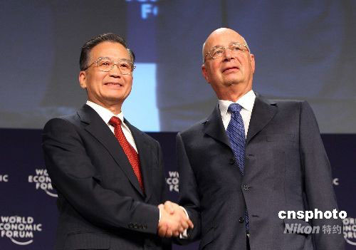 圖:溫家寶與施瓦布出席天津達沃斯論壇開幕會