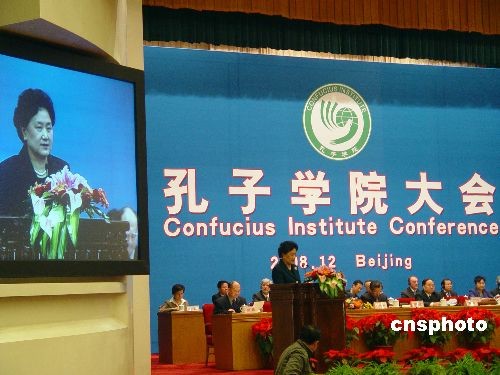 每年舉行一次的孔子學(xué)院大會十二月九日下午在北京人民大會堂開幕,中共中央政治局委員、國務(wù)委員劉延?xùn)|在講話中對下一步如何辦好孔子學(xué)院,提出了四點建議,即堅持辦學(xué)宗旨、注意提高質(zhì)量、鼓勵探索創(chuàng)新、推動平等合作。本屆孔子學(xué)院大會的主題為“孔子學(xué)院與全球化教育”,來自七十八個國家和地區(qū)的約五百位大學(xué)校長和孔子學(xué)院代表將在今后的會議中圍繞漢語推廣與世界多元文化發(fā)展、孔子學(xué)院對大學(xué)和當?shù)氐呢暙I等議題進行廣泛交流。中新社發(fā) 應(yīng)妮 攝