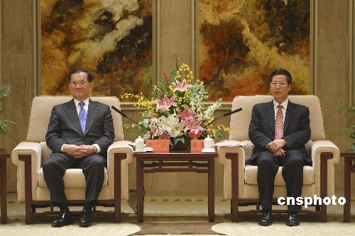 12月14日,中共天津市委書記張高麗在天津會見中國國民黨榮譽主席連戰。中新社發 盛佳鵬 攝