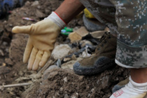 8月10日,甘肅舟曲泥石流災(zāi)區(qū)氣溫超過35攝氏度,醫(yī)療隊(duì)人員在救援現(xiàn)場噴灑消毒劑進(jìn)行防疫消毒。中新網(wǎng)記者 金碩 攝