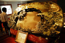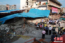 8月13日,甘肅舟曲泥石流災區上源小眼峪垮下的巨大山石。在大眼峪和小眼峪有四道被稱作“谷坊壩”的四道防泥石流堤壩,在這次災害中全部被沖毀。中新社發 廖攀 攝