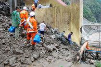 8月14日,舟曲災(zāi)區(qū)救援官兵晝夜展開清淤工作。截至當(dāng)日,影響大型機(jī)械進(jìn)入舟曲重災(zāi)區(qū)的部分街道已經(jīng)暢通。蘭州軍區(qū)某集團(tuán)軍工兵團(tuán)從13日晚上9點(diǎn)到14日上午9點(diǎn),出動(dòng)80人、3臺(tái)挖掘機(jī)、4臺(tái)裝載機(jī)、21臺(tái)裝卸車,在舟曲縣城南街清理廢墟。經(jīng)過一晚奮戰(zhàn),清理淤泥200立方米,街道已基本暢通。中新網(wǎng)記者 金碩 攝