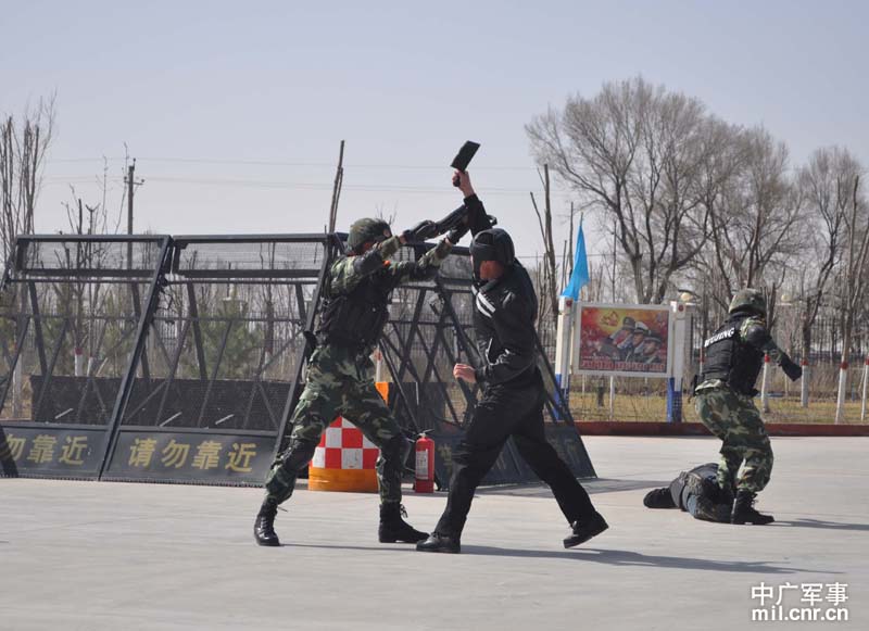 武警兵團指揮部解救“被劫持人質”演練