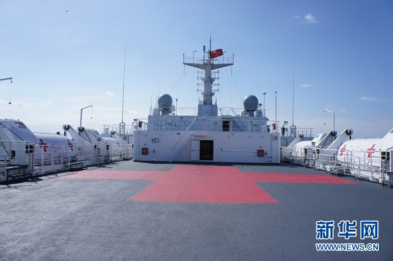 “和平方舟”醫院船,在這次演習中作為指揮艦和醫療救援船。曾執行過“和諧使命”系列遠航任務。孟彥 攝 圖片來源:新華網