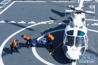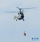 搜救直升機(jī)營(yíng)救“落水人員”。孫利 攝 圖片來(lái)源:新華網(wǎng)