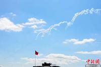 8月12日12時(北京時間下午2時),“和平使命-2013”中俄聯合反恐軍事演習,在俄羅斯切巴爾庫爾合同訓練場進行了實兵實彈協同訓練。圖為中方武裝直升機發射干擾彈隱蔽接敵。中新社發 譚長俊 攝