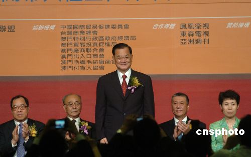 十月十七日,中國國民黨榮譽(yù)主席連戰(zhàn)出席在澳門旅游塔舉行的第四屆世界華商高峰會并以“以堅固核心充實(shí)緊密網(wǎng)路”為主題進(jìn)行演講。中新社發(fā) 史利 攝
