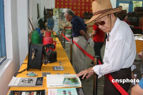 高雄縣首屆“眷村文化節”二十日和二十一日,位于高雄鳳山市的眷村環繞、占地八公頃的“海軍明德訓練班”舉辦,許多退役老兵前來參觀懷舊風情的眷村文物展和圖片展。中新社發 耿軍 攝