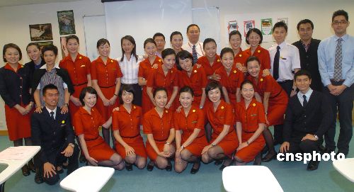 十月二十三日,澳門航空在總部舉行韓國乘務員結業暨第三屆最佳乘務員頒獎儀式,培訓后的十八名韓國乘務員考試合格﹐獲得乘務員飛行執照。同時,澳門航空向四名乘務員頒發最佳乘務員獎狀。中新社發 史利 攝