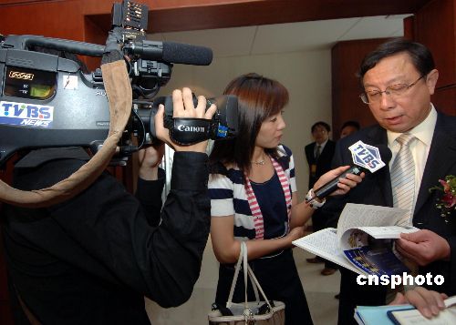 十月二十七日,來自臺灣的TVBS電視臺記者在福建永安采訪“福建省戰(zhàn)時省會永安:國共合作與閩臺關系學術報告會”。當日,一百多位海峽兩岸專家學者出席該報告會。中新社發(fā) 王東明 攝