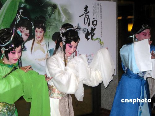 當“小青”愛上許仙,《白蛇傳》的故事將怎樣演繹?由臺灣由知名編劇曾永義、中國大陸一級導演沈斌、作曲王世明聯袂打造、臺灣戲曲學院師生共同主演的新編京劇《青白蛇》將于下月在臺北公演。10月29日,《青白蛇》的主要演員在記者會上亮相。中新社發 王林 攝