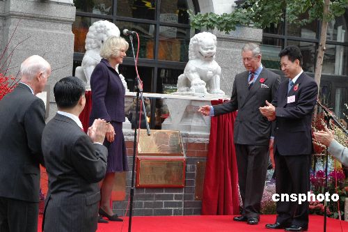 當地時間十一月一日上午,英國王儲查爾斯夫婦到倫敦華埠參觀訪問。中新社發 程嘉揚 攝