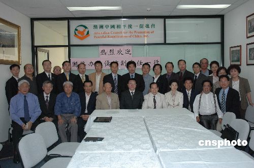 11月5日,中國國務院僑務辦公室副主任馬儒沛(前排左六)一行訪問澳洲中國和平統一促進會,與僑領們座談并合影。中新社發 葛明 攝