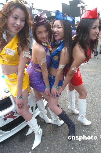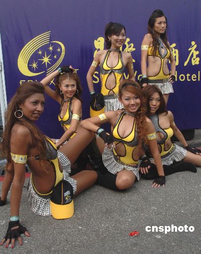 十一月十八日,幾位美女在第五十四屆澳門格蘭披治大賽車上亮相。性感的服飾。苗條的身材,動人的眼神,爭艷斗麗,各領(lǐng)風(fēng)騷。中新社發(fā) 史利 攝